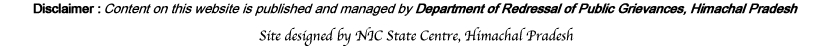 For queries kindly contact : Department of Redressal of Public Grievances, HP Secretariat, Shimla (H.P.) | Phone : 0177-2880490 | email : janshikayatnivaran[at]nic[dot]in
